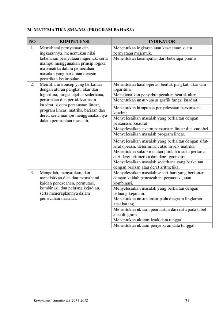 Kisi-kisi soal Ujian Nasional Matematika SMA/MA Tahun Pelajaran 2012/…