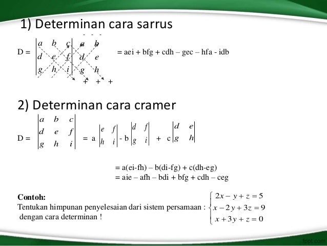 Sistem Persamaan Linear Determinan - Berikut ini merupakan pembahasan tentang Sistem Persamaan Linear Determinan semoga bermanfaat