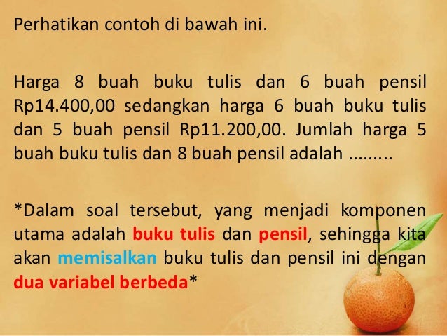 Penerapan Sistem Persamaan Linear Dalam Soal Cerita