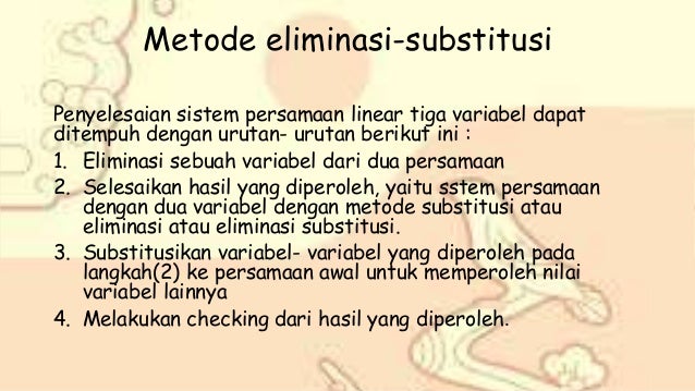 Sistem Persamaan Linear Tiga Variabel Metode Substitusi - Berikut ini merupakan pembahasan tentang Sistem Persamaan Linear Tiga Variabel Metode Substitusi semoga bermanfaat