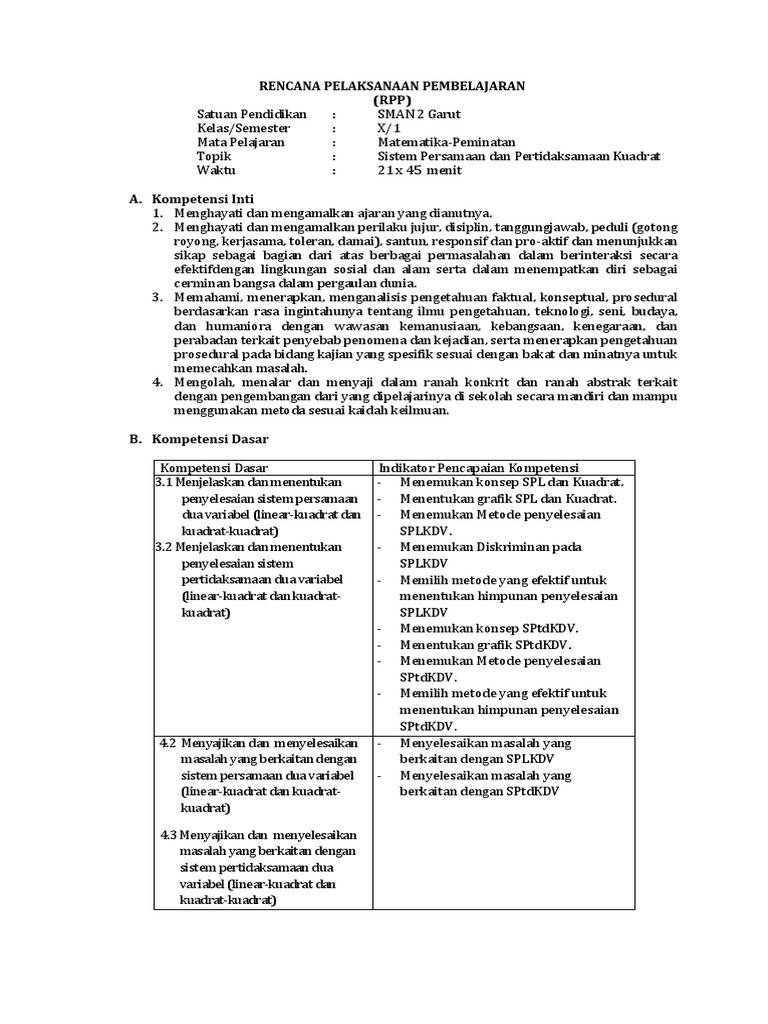 RPP Sistem Pertidaksamaan Dua Kuadrat