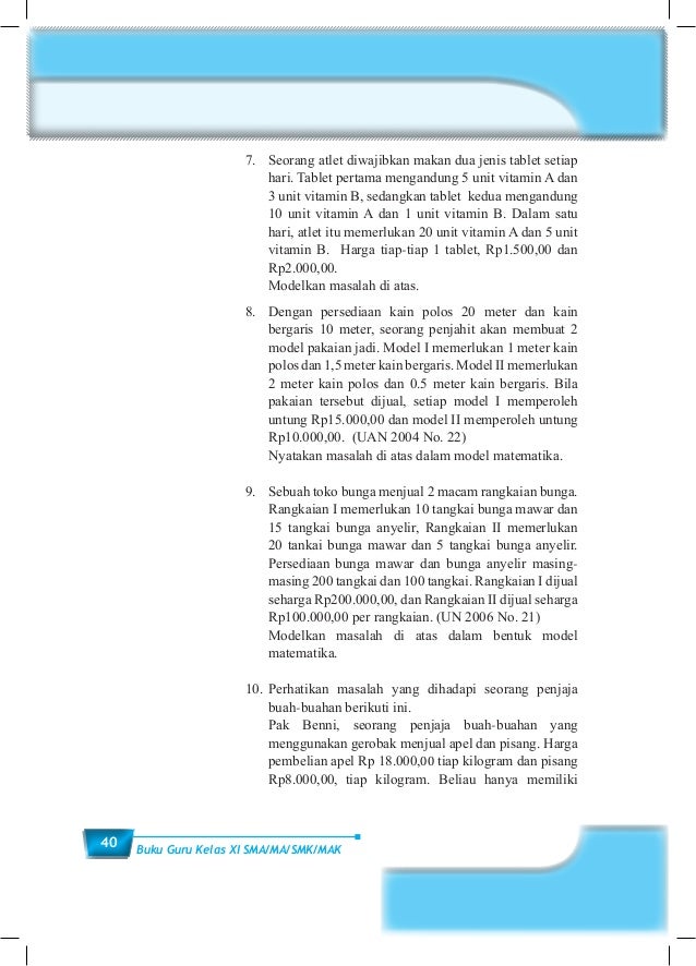 Pengertian Program Linear dan Model Matematika SMA Kelas 11 Kumpulan Rumus Matematika